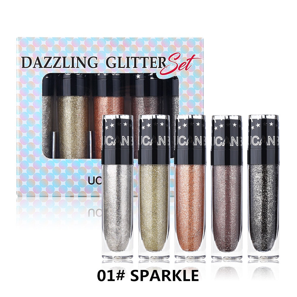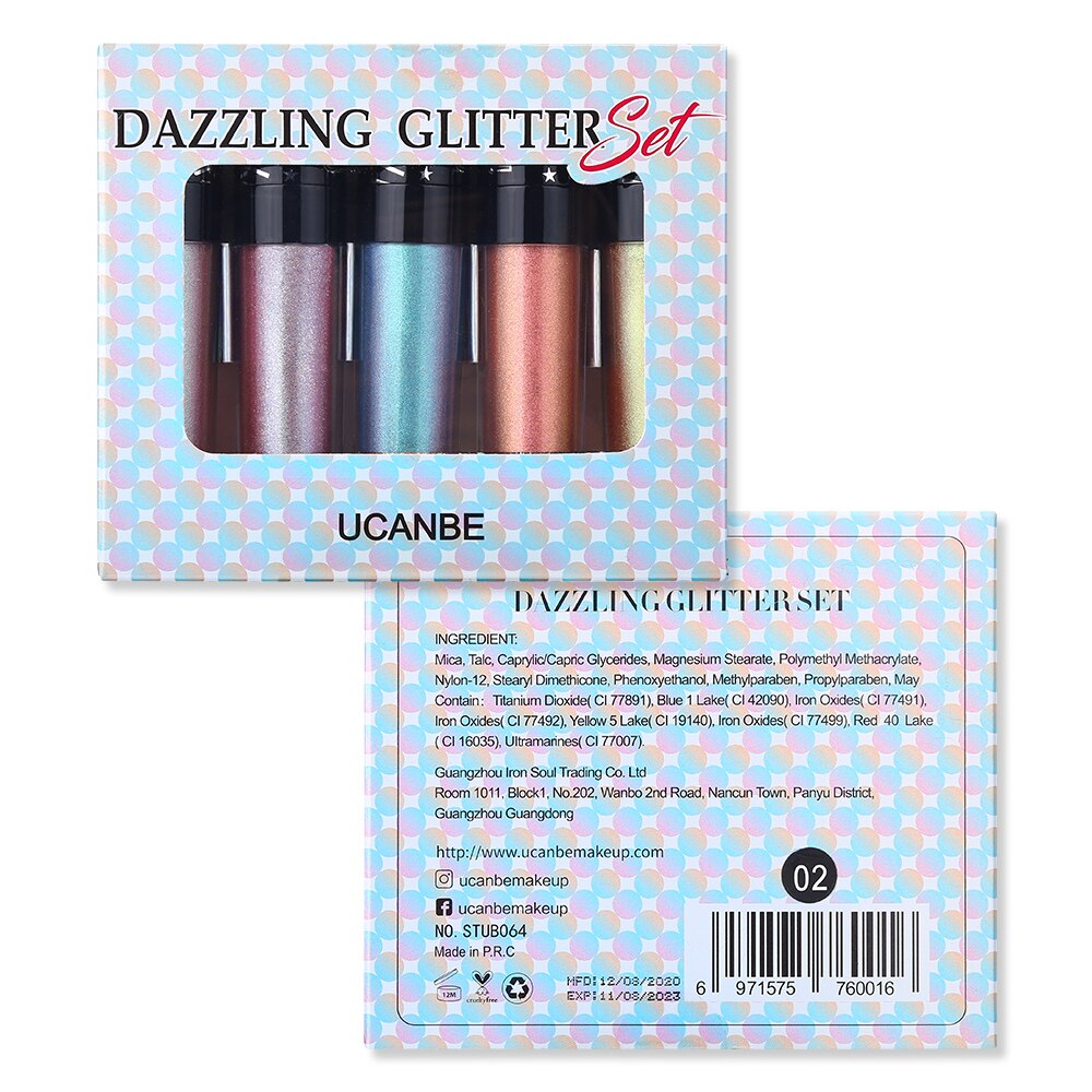 Set 1- Sparkle:  Incluindo 5 cores diferentes, textura leve. Incluindo Diamond Crush, Gold Foil, Melting Rose, Lightsalmon, Dark Night. Este conjunto pode ser usado não só nas pálpebras, mas também nas sobrancelhas, lábios, bochechas, rosto e corpo para acentuar o seu estilo de maquiagem. Sugere-se que possa ser usado sobreposto a outros cosméticos.