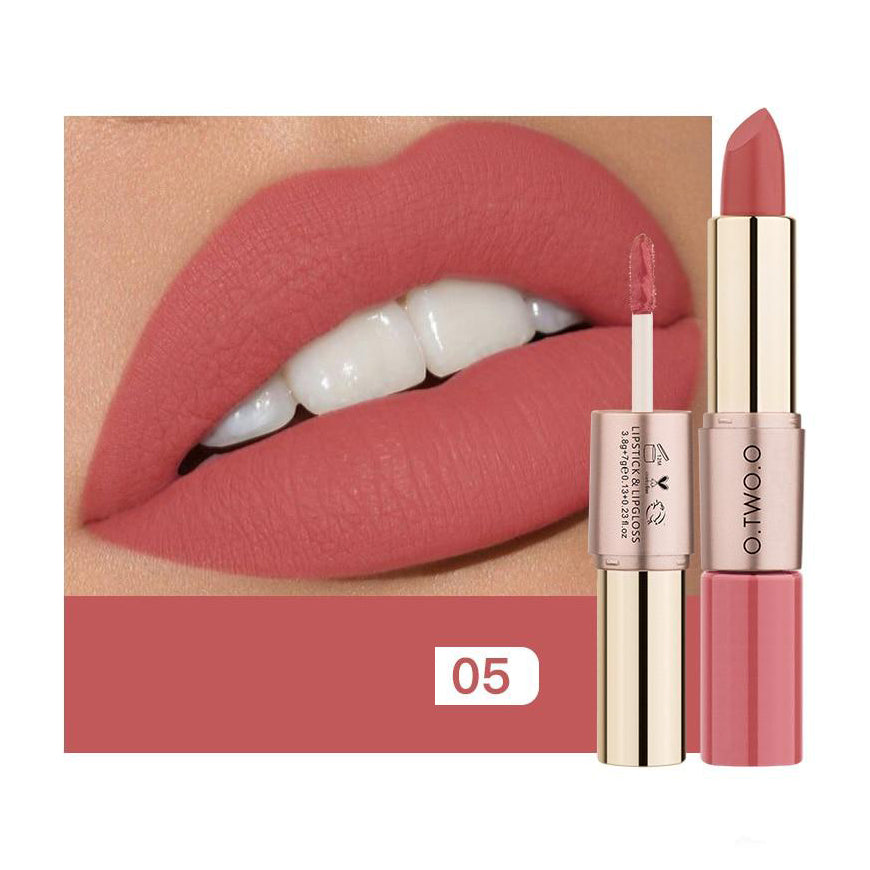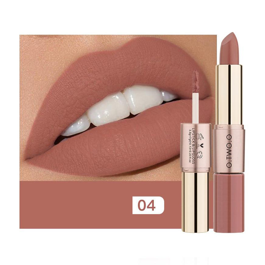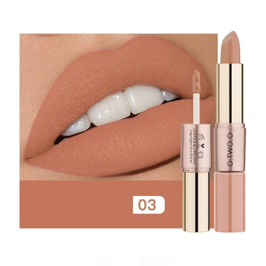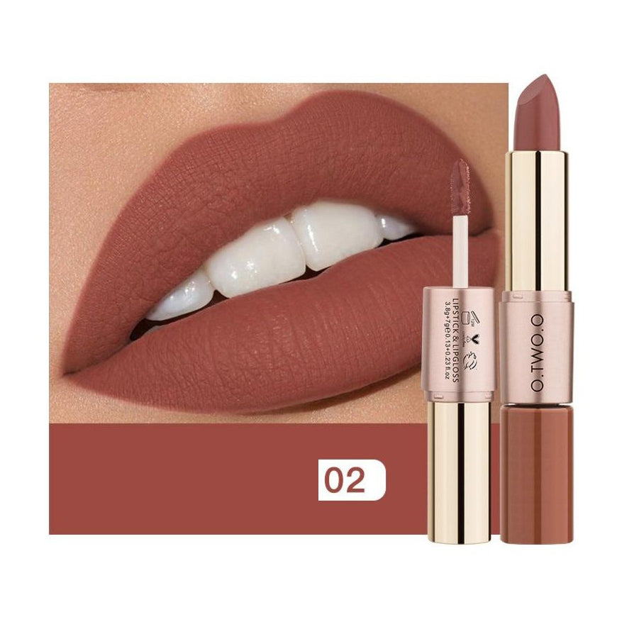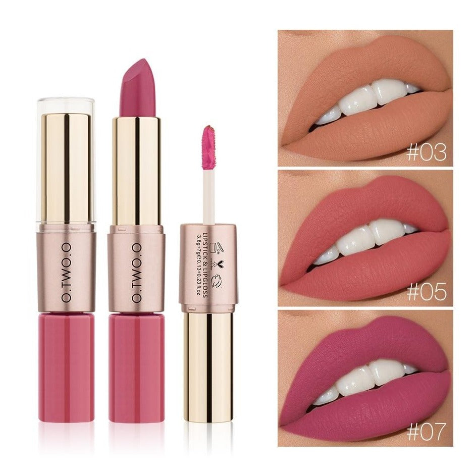 1. O  Batom Matte e Batom Líquido O.TWO.O 2 em 1 é um batom com lipgloss, fácil de transportar.